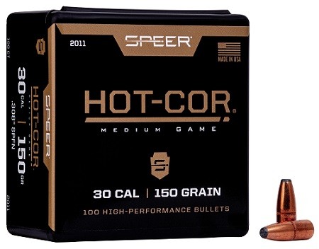 Perfect for those long range shots, the Speer Hot-Cor Spitzer has a higher ballistic coefficient and are designed to retain velocity over distance. This pattern, coupled with the Hot-Cor process which virtually ensure the elimination of core slippage, provide a bullet that offers deep penetration and excellent expansion, regardless of the range.