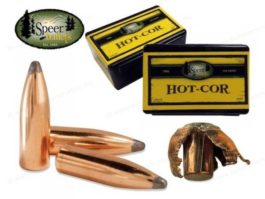 Perfect for those long range shots, the Speer Hot-Cor Spitzer has a higher ballistic coefficient and are designed to retain velocity over distance. This pattern, coupled with the Hot-Cor process which virtually ensure the elimination of core slippage, provide a bullet that offers deep penetration and excellent expansion, regardless of the range.
