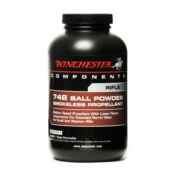 The low flame temperature of 748 extends barrel life versus other similar speed powders. It can be used in a wide variety of centerfire rifle loads including 222 Rem, 30-30 Win, 308 Win, and up to 458 Win. Mag. Combine Winchester components with 748 to duplicate 308 Win factory load ballistics. 748 is recommended for use with the new 308 Fail Safe bullets.