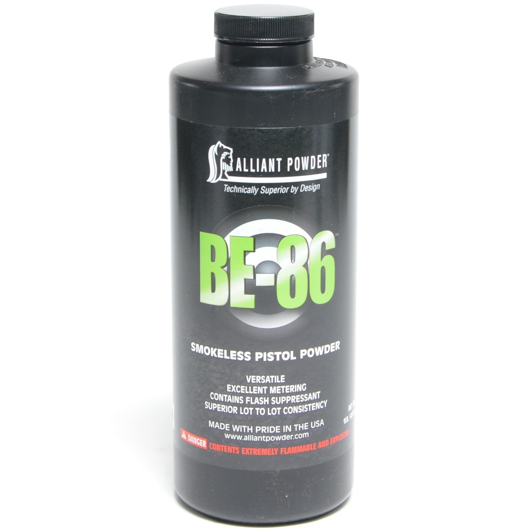 The special extruded flake formulation results in excellent ballistics in a wide array of centerfire pistol loads, with high energy, an ideal burn speed and less flash. It meters well and is available in 1- and 8-pound canisters. Like all Alliant Powder offerings, BE-86 provides superior lot-to-lot consistency.