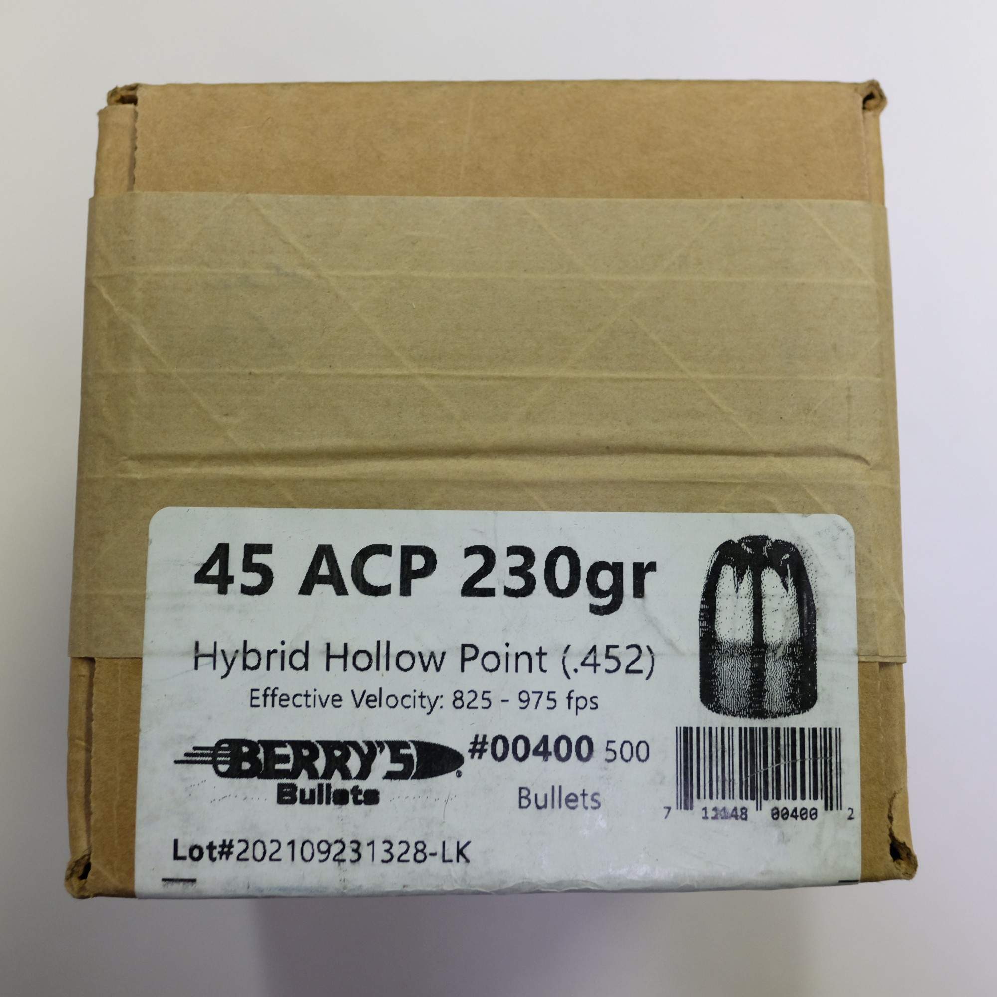 BERRY 45 (.452) 230gr HHP BULLET HYBRID-HP 500/Box
