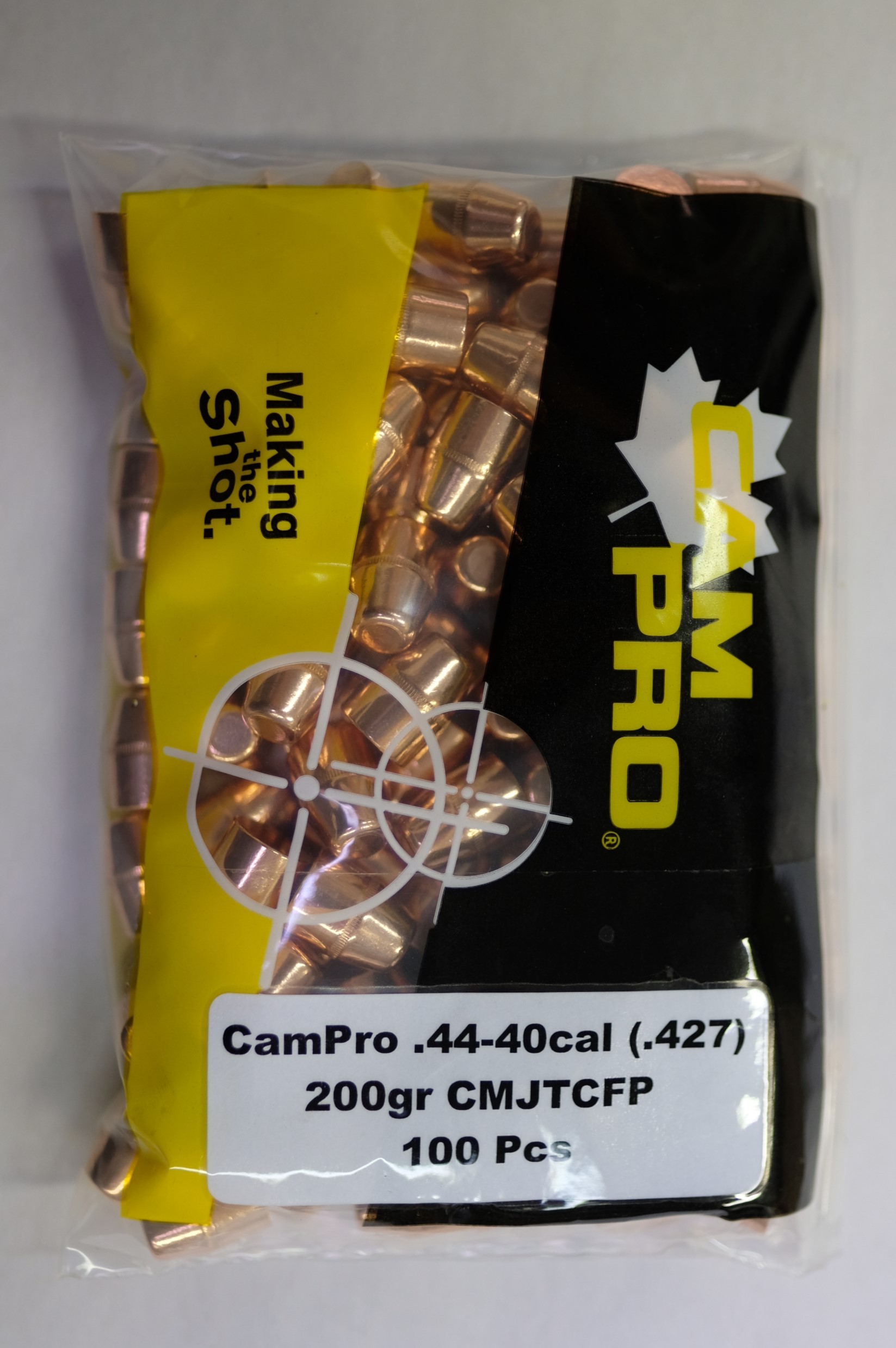 A premium plated 44-40cal 200gr Truncated Cone Flat Point bullet with an extra thick plating making it suitable for everything from a plinking load to a full on 44-40 out of the most modern carbine. These bullets have a plating that is thicker than Berry's bullet plating. Approx .08'' in thick.CamPro – 44cal (.429) 240gr CMJTCFP 100/Bag