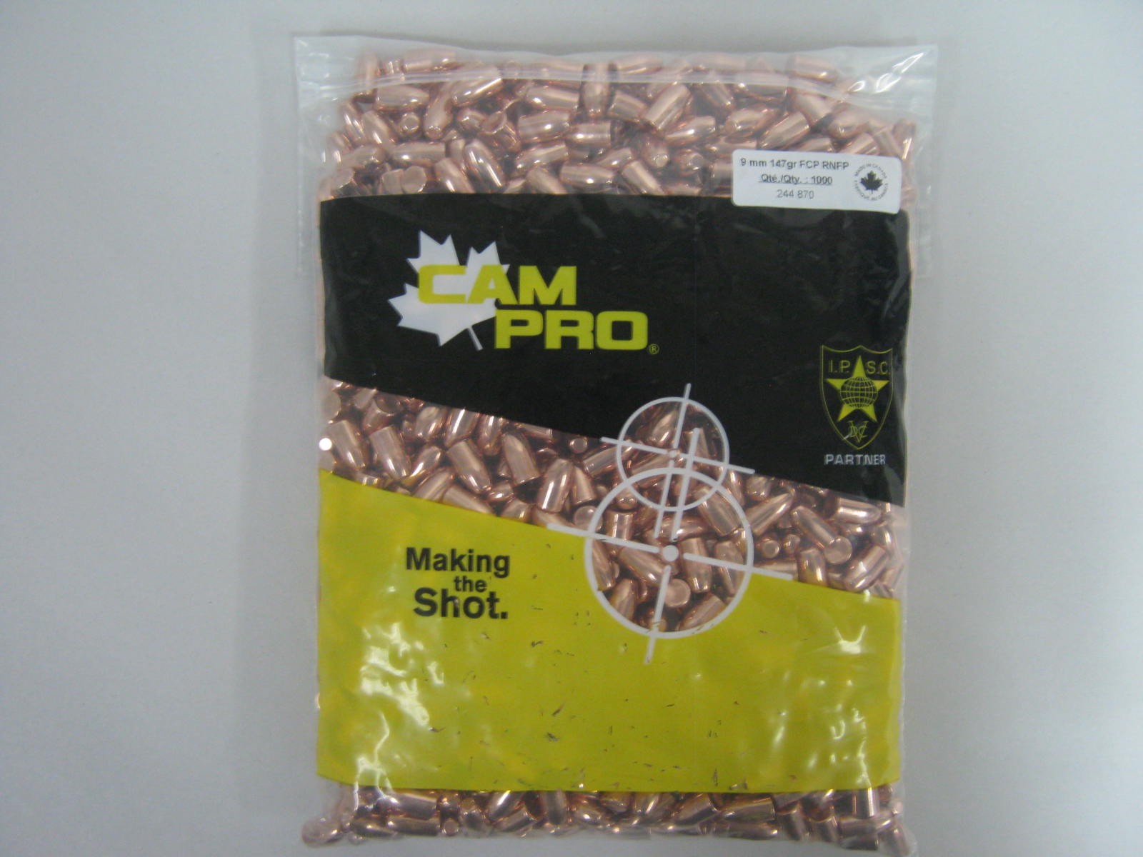 CAMPRO bullets offer one of the highest quality and value on the market. You now have the opportunity to use the same quality during competitions and while you practice. Fully copper-plated and featuring a swaged lead core, each bullet is carefully reformed at the end of the process. Experience an ultra-precise shot—bullet after bullet.CamPro – 9mm (.355) 147gr RSFN 100/Bag