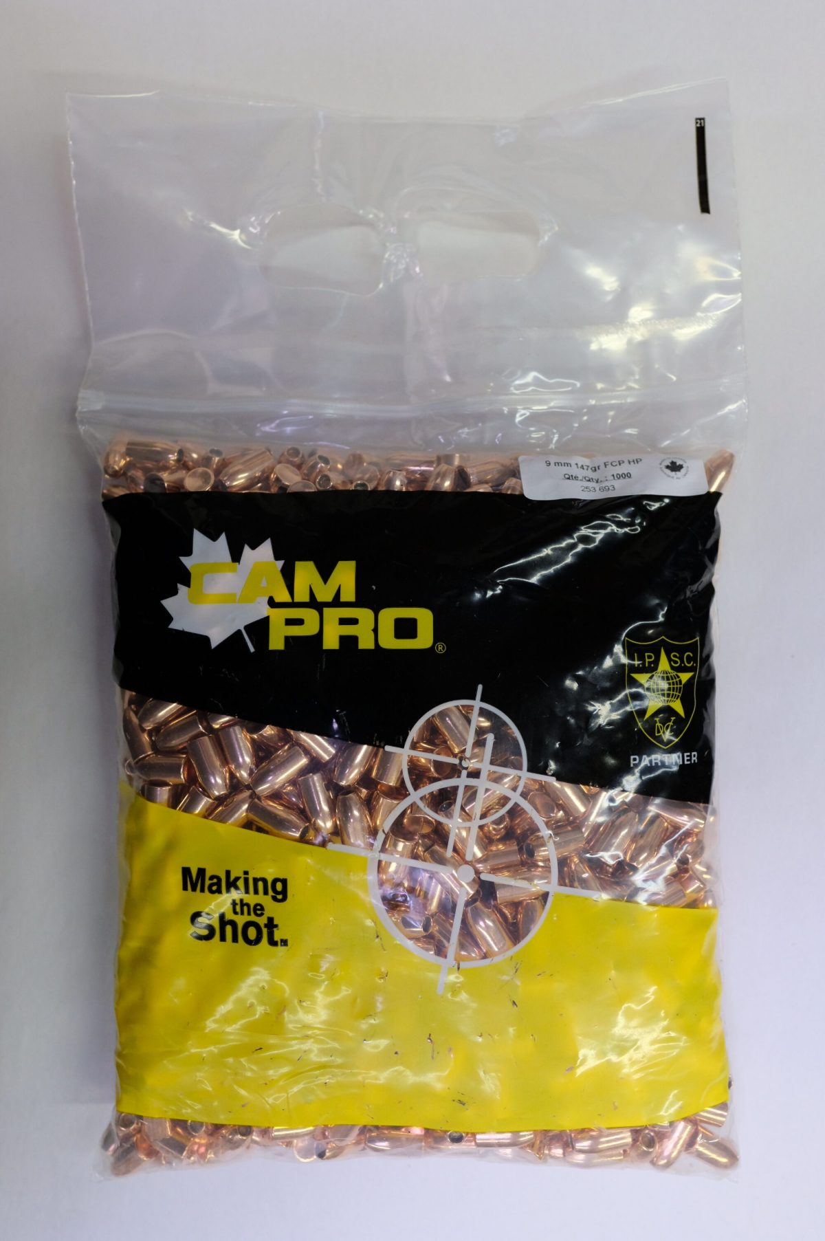 CAMPRO bullets offer one of the highest quality and value on the market. You now have the opportunity to use the same quality during competitions and while you practice. Fully copper-plated and featuring a swaged lead core, each bullet is carefully reformed at the end of the process. Experience an ultra-precise shot—bullet after bullet.CamPro – 9mm (.355) 147gr RSFN 1000/Bag