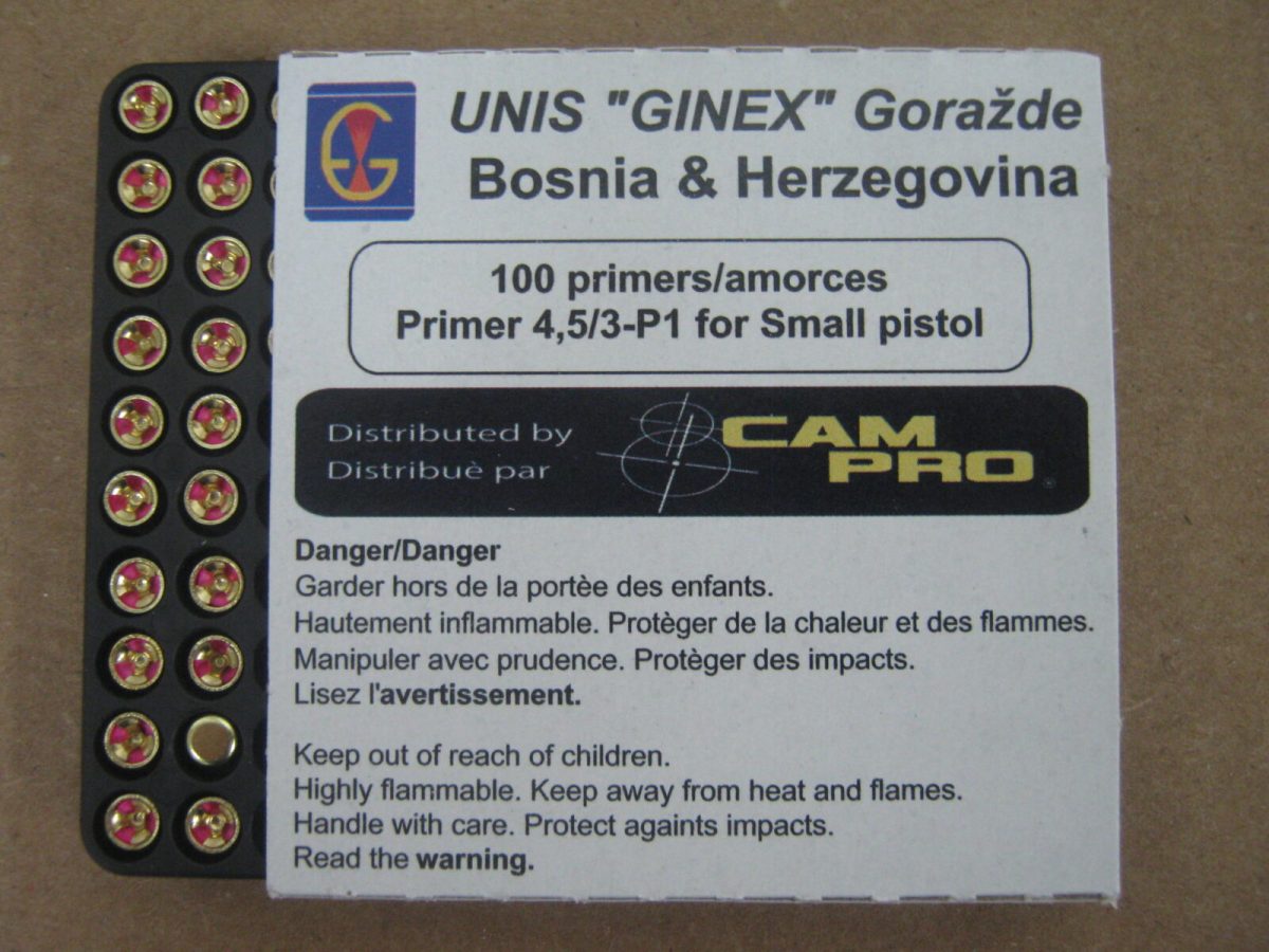 A manufacturer of ammo components – as well as blasting caps and electric igniters – since 1951, this Bosnia-Herzegovina–based company knows a thing or two about turning a spark into a bang. Primers from UNIS GINEX are available with standard SINOXIDE priming mixture charges, as well as EKO priming mixture that’s formulated to be free of heavy metals.