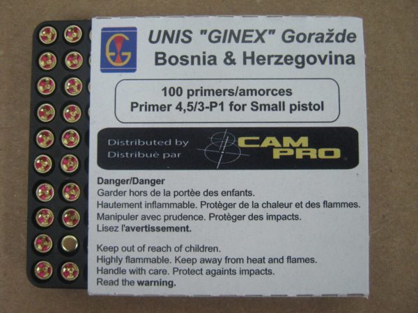 Campro/UNIS Ginex Small Pistol Primers 100/Sleeve