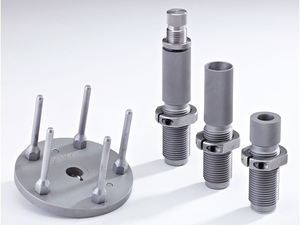 - Includes swage push die, swage holder, push rod, small swage punch and large punch, and shell holder adapter.