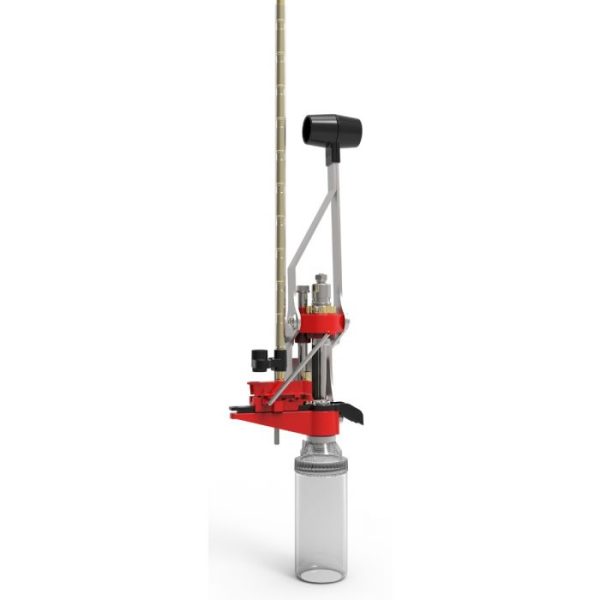 Large 1 1/8 diameter ram drilled completely through to allow spent primer disposal direct to trash can with attached tube. Ram is two-piece to allow installation of the mammoth 50 BMG shell holder. All support by over 12 square inches of ram bearing surface.