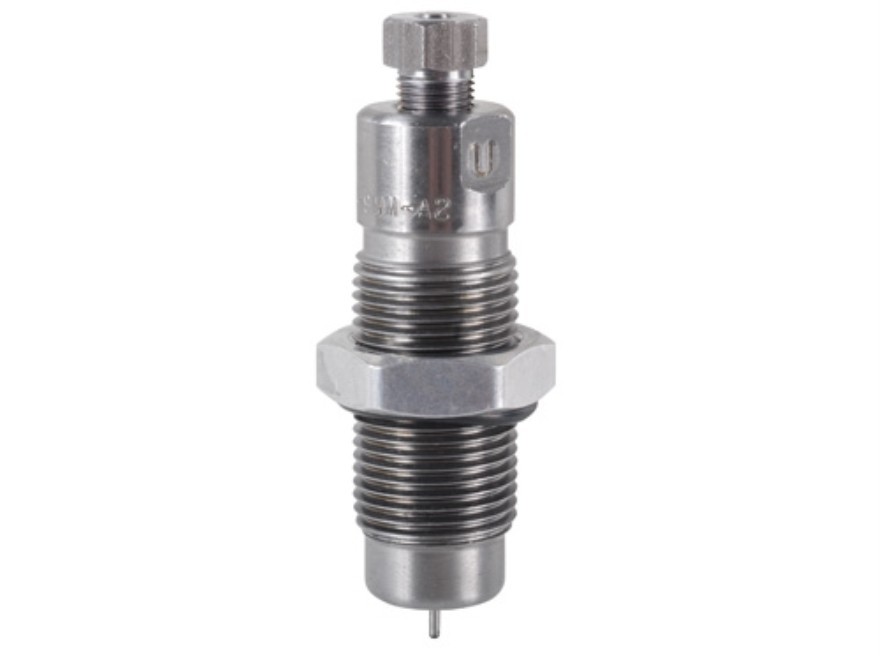 We use a solid carbide insert, ground to a special contour that does not leave a belt mark on the case like other carbide dies. With a carbide sizer, no case lube is needed. Sizer also features an unbreakable decapper and built-in stuck case remover. The Powder Through Expanding Die permits charging the case while expanding the case mouth. The Bullet Seat and Feed Die features a free floating bullet seater to insure maximum accuracy.