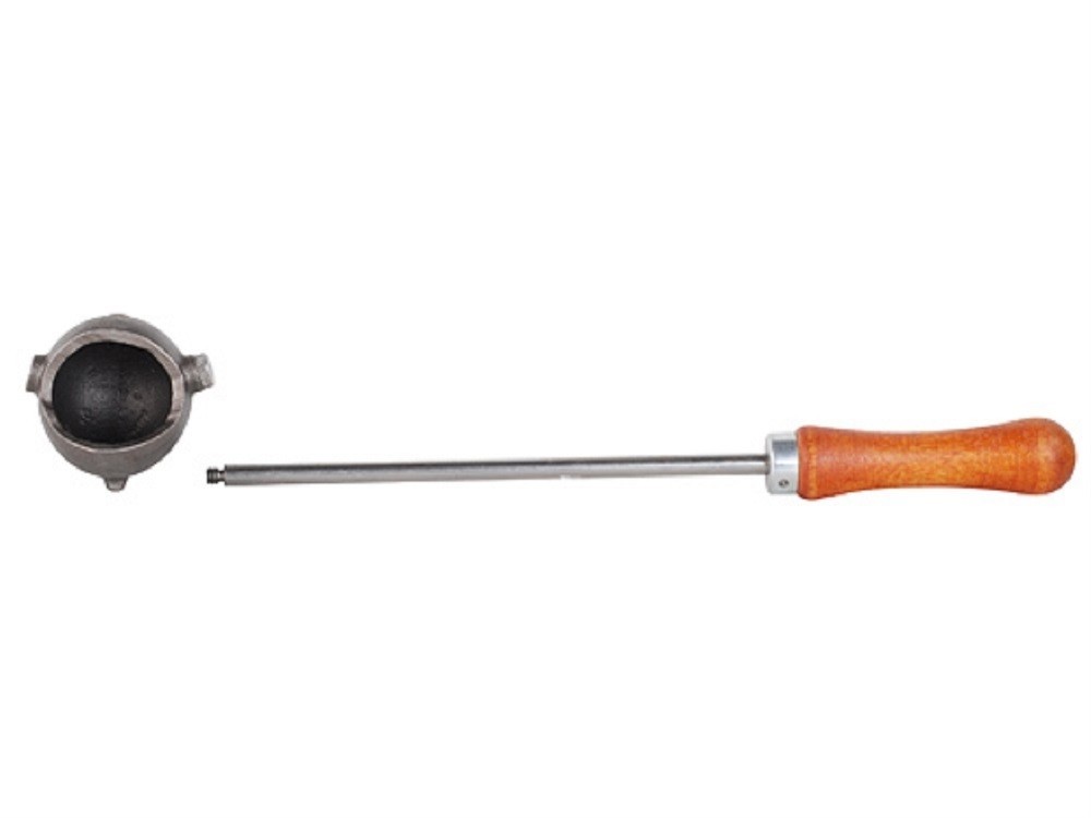 The Lyman Lead Dipper is the ideal tool for casters looking for an easy to use dipper for accurate pours. The cast iron head is shaped to achieve accurate pours helping to prevent air pockets in finished bullets. The long stem dipper can also be used for stirring molten lead alloys. Hardwood handle stays cool during use. Head holds from 1 to 1.5 ounces of molten alloy. Head and handle is threaded for both right and left handed casters.