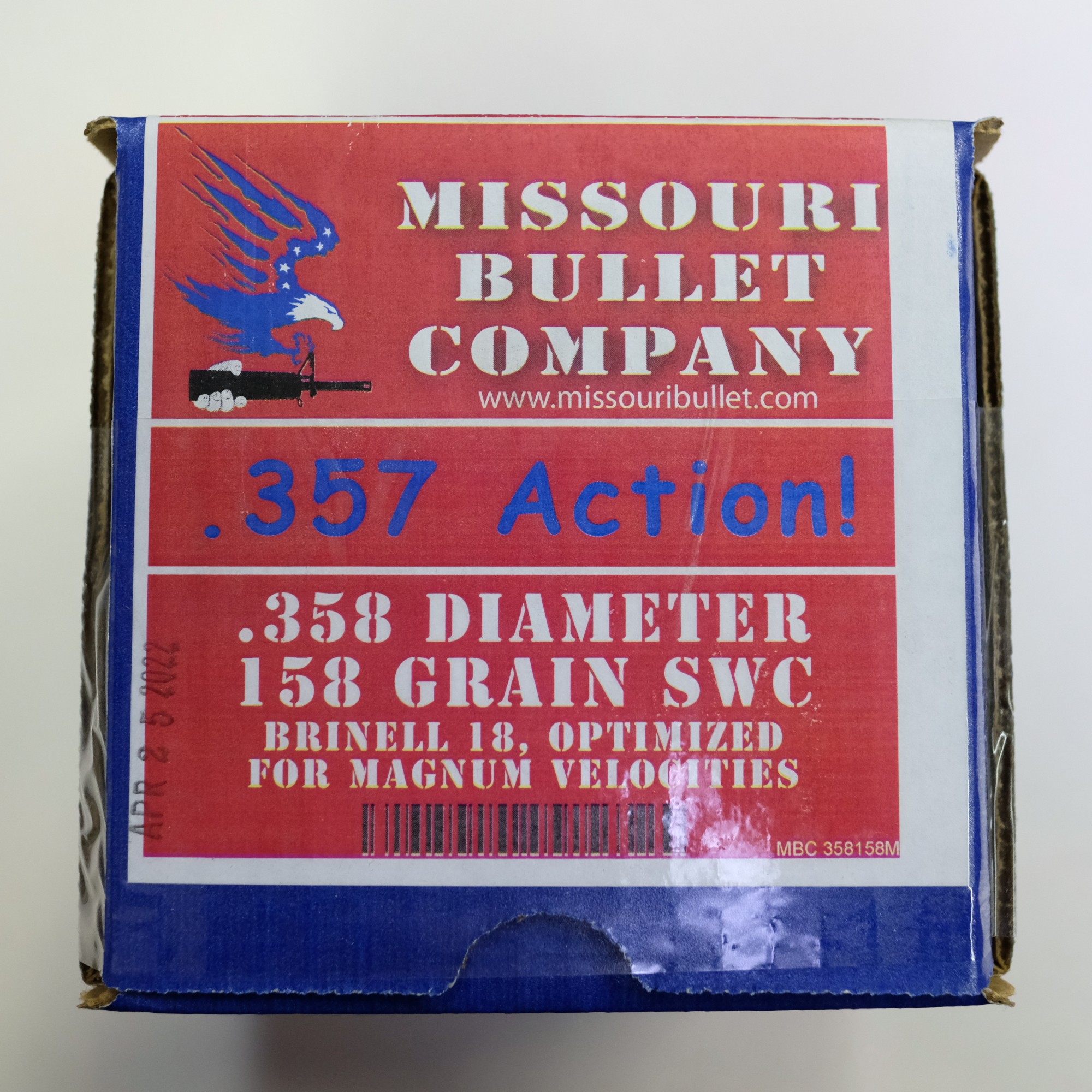 Missouri Bullet Co – 38/357 (.358) 158gr LEAD Bullet SWC Action 500/Box