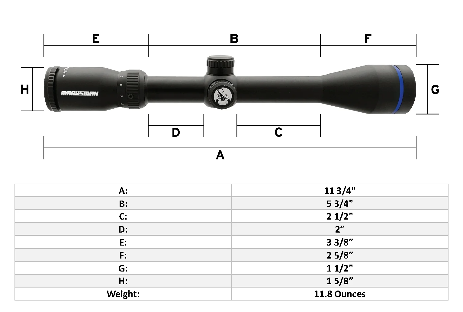 The Marksman series by Scorpion Optics: rugged, dependable, accurate. From Rimfire to Hunter models, these scopes are designed to be versatile and budget-friendly. With weaver-style one-inch rings included, quality parts, modern design, and precision assembly ensure a rock-solid product for years to come. Intended for use on .243 or lower calibers, backed by the Scorpion lifetime Sting Fee warranty for peace of mind. No need to worry about manufacturer issues – ever. Proof of purchase required. Conquer the wild with confidence, precision, and style with the Marksman series by Scorpion Optics.