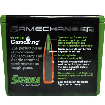 Introducing the Sierra GameChanger hunting bullet: the perfect combination of Sierra’s legendary match accuracy coupled with deadly penetration. Sierra re-engineered their legendary MatchKing bullet into a hollow point design for quick expansion and fitted it with a transparent green tip for ballistic uniformity. Inside, the GameChanger features a unique construction that utilizes a special lead alloy surrounded by a tough copper jacket that delivers excellent penetration and expansion at a variety of ranges. It’s a GameChanger on any hunt!