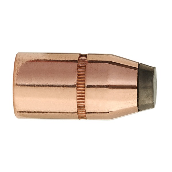 Designed for hunting, specifically for large bears, and for Handgun Metallic Silhouette competition with magnum calibers, this 300 grain #8630 Jacketed Soft Point bullet was introduced in 1989. Its construction ensures deep penetration on the largest game due to a heavy jacket and extremely hard 6% antimony core. This is one of the heaviest bullets Sierra produces and should be used in a 44 Magnum, 445 Super Mag, or a similar cartridge. It has an established reputation in the game fields of North America and is considered to be the bullet for hunting dangerous game with a handgun. It is not, however, recommended for deer-size game because of its hardness. Because this bullet has a cannelure and can be roll-crimped, it may be loaded in cartridges and used in modern rifles with tubular magazines.